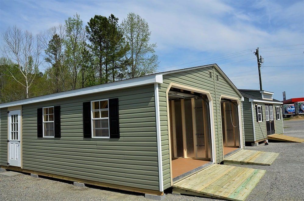 We are very proud to offer 20' and 24' wide buildings. These are available in depths of up to 40' They are available in either Vinyl or Smart Panel painted siding. These are very robust buildings and can be moved if you decide to relocate. As with all of our buildings, you choose your lay out, options, window and door placement and colors. 4 windows, 2 double doors, 8" on center pressure treated floor joists, 16" on center walls and 16" on center 2X6 rafters 12 vinyl colors, 19 paint colors (for smart panel sided buildings), 12 shingle colors 23 trim colors are all standard. Options include but not limited too, single or double garage doors, lofts, work benches, shelves, ramps, interior finishing, pre-wired for electrical and more.