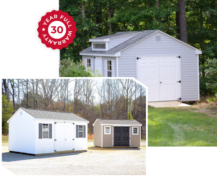 In the market for a shed but not sure where to start? Discover our hand-crafted Amish sheds for sale in Glen Allen, VA. The Shed Zone has a vast inventory of high-quality and masterfully crafted vinyl and woodsheds to meet all your needs. All our sheds come with an impressive EXCLUSIVE 30-YEAR FULL WARRANTY and set building standards that speak to the level of skill and passion behind our builder’s craft. Our inventory is ready to ship from either our Glen Allen or Amelia location. Additionally, our inventory can serve as a guide to help customize a shed to fit your individual needs. Our custom storage sheds adhere to the same building standards as our ready to ship sheds and offer options such as door and window placement, size, HOA compliant vinyl, and more.